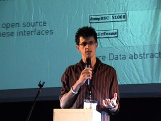 Chris O'Shea - Sonicforms Sonicforms is an open source research platform for developing tangible interfaces for audio visual environments. The aim of the project is to improve this area of musical interaction by creating a community knowledge base and open tools for production. By decentralising the technology and providing an easier entry point, artists and musicians can focus on creating engaging works rather than starting from the ground up. Rather than using proprietary software, whose limitations can often influence the design decisions, Floss (free/libre and open source software) allows the creator to rebuild the tools of production to meet their desired method of interaction. This presentation will contain a brief look at the software explored and the ways in which open source software can be adapted to make such interfaces. Sonicforms is not only a demonstration of how Floss can be more productive, but also engages the realm of intellectual property. Tangible sound interfaces to this date have been largely retained by their authors and thus the power to create them is also limited. By sharing knowledge, Sonicforms enables more artists to be able to create similar interfaces and encourages them to share their work with the wider community. What impact has this open project had on other artists? What effect does it hold for further development? Will this open source production eventually lead to improved tangible instruments?