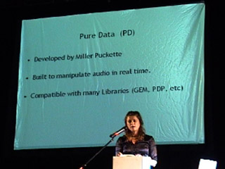 presentation will reflect upon the\cf2 experience of using Pure Data to construct an interactive program that explores the